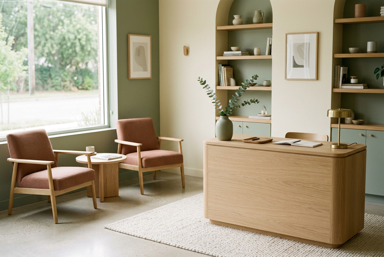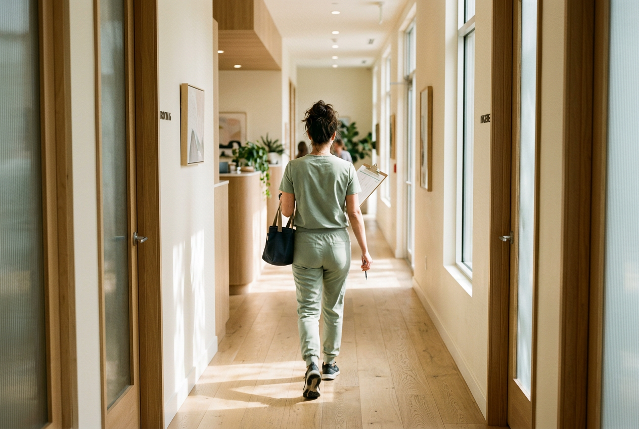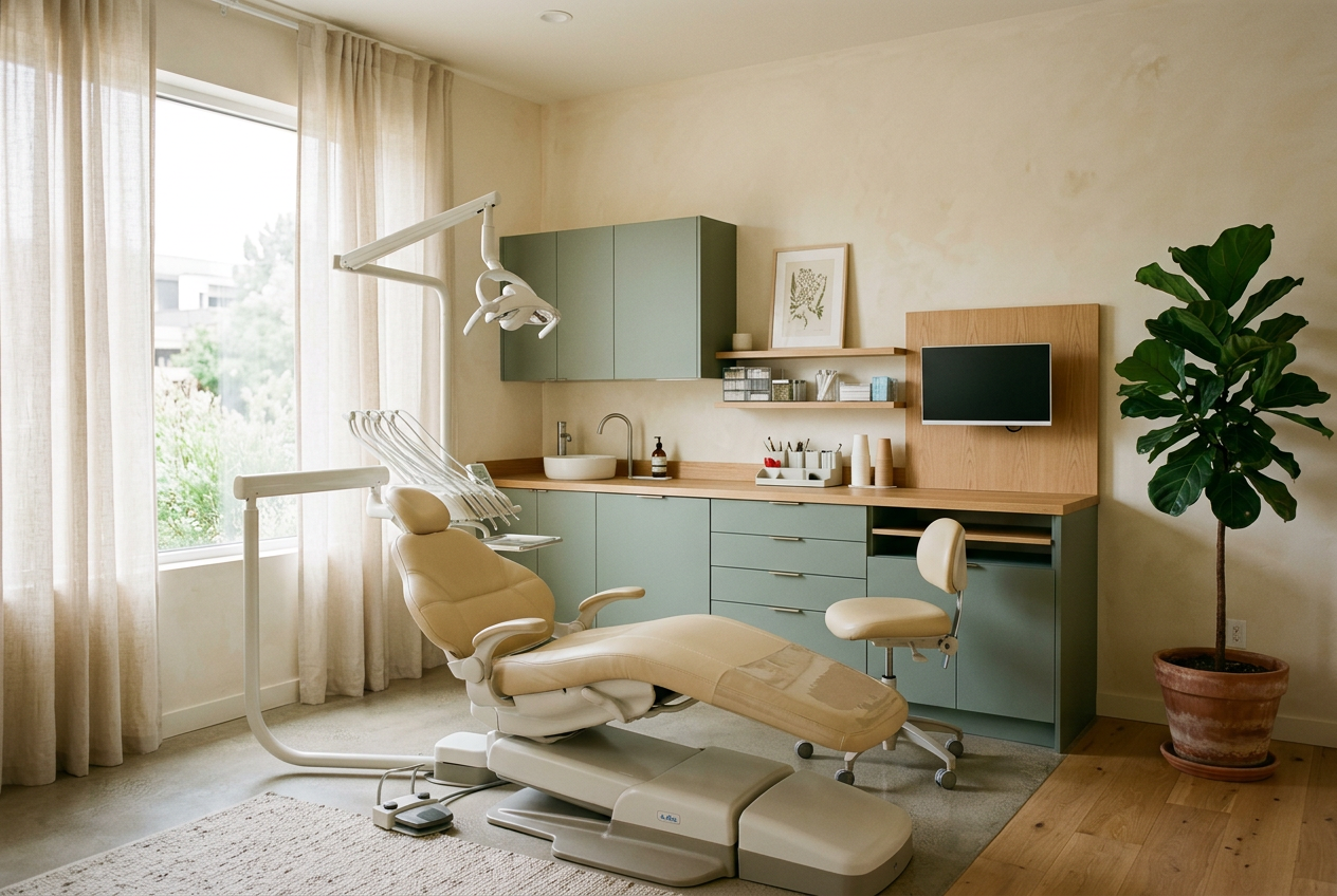 Quiet rooms, natural light, no fluorescent buzz. Designed to lower the temperature for anxious patients.